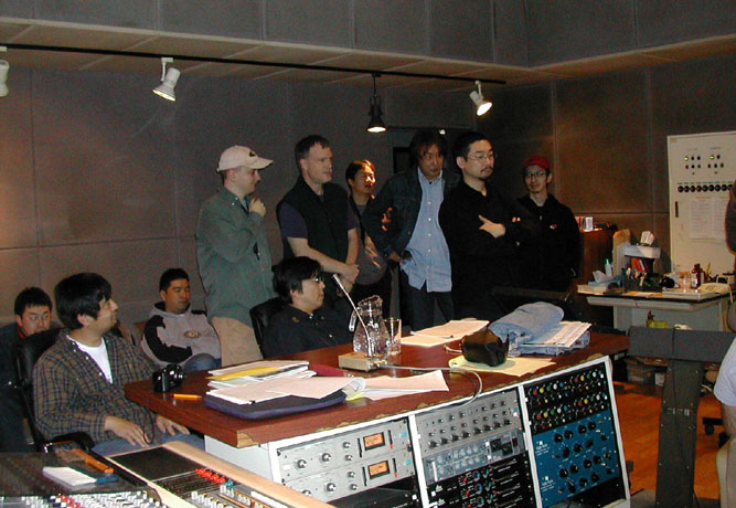 | レコーディング終了後の お疲れ様フォト。 疲れた表情の中にレコーディング内容に満足気な顔がうかがえますね。 楽しみに!! 手前左は、ジェイトーマス | |||||||||||||||