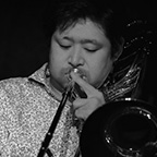 西村健司(Kenji Nishimura) Bass Trombone 1984年広島生まれ。11歳からトロンボーンを始め、愛媛大学在学時に軽音楽部「Sound Solution Orchestra」に参加、ジャズとの出会いを果たす。卒業後、地元企業に就職するも、ジャズへの情熱を捨てきれず、約7年の会社員生活を経て上京、洗足学園音楽大学ジャズコースへ入学。トロンボーンを向井滋春氏に師事。同大学選抜学生ビッグバンド「GetJazz Orchestra」や国立音楽大学「Newtide Jazz Orchestra」などに参加。都内を中心にコンボやビッグバンドのライブに出演するなど、精力的に活動している。 |